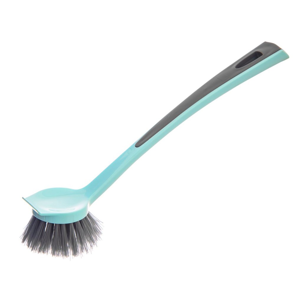 Kartáč na nádobí s rukojetí. Možnost zavěšení. Materiál: plast. Rozměry: pr. 6 cm, d. 25 cm.Doplňkové parametry